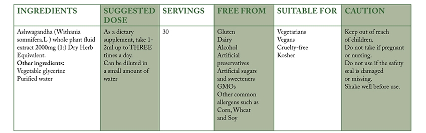 Nature's Answer provides a highly concentrated alcohol-free extract that is holistically balanced, safe and authentic. Unique on the market as you obtain 2000mg of sustainably sourced Ashwagandha per serving, that is tested, verified and entirely free from impurities. Using a cold extraction process, the natural plant compounds are not exposed to heat or harsh solvents and the final Ashwagandha herbal extract therefore maintains the same synergistic ratios as in the original plant. Superior in quality, and made just as Mother Nature intended! Liquid extracts are far better than tinctures, as they are more potent and are better absorbed than tablets or capsules you may have considered. Supports your overall mental and emotional wellbeing.