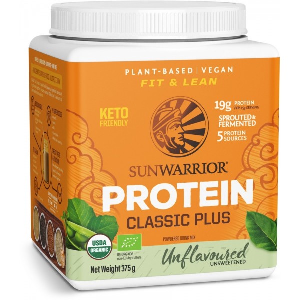 Sun Warrior’s Classic Plus Unflavoured is packed with 5 powerful plant-based protein sources providing a robust amino acid profile with plenty of Branched Chain Amino Acids (BCAAs) and all the essential amino acids. 19g of organic protein per serving.