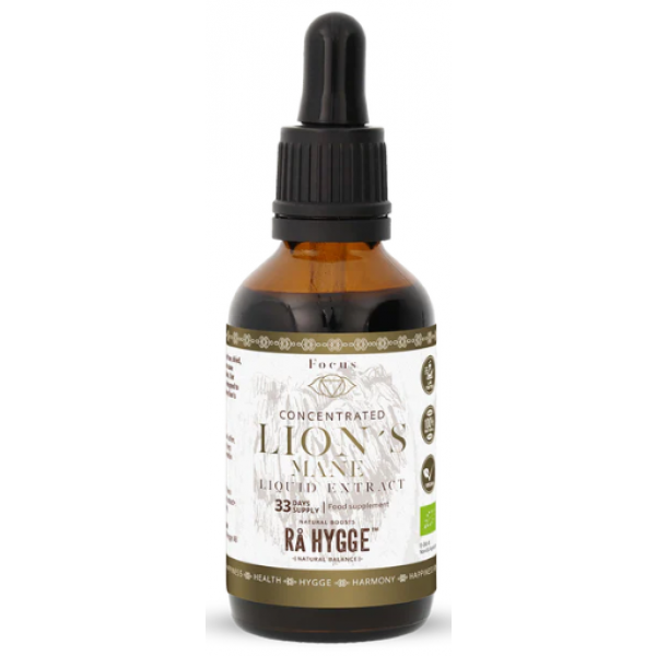 The user-friendly lion’s mane extract is completely alcohol-free, but the beneficial water- and fat-soluble compounds from lion’s mane are extracted by double extraction in hot water and alcohol. In the innovative manufacturing process, however, the alcohol is completely removed from the finished product. Rå Hygge lion’s mane tincture contains only sustainably harvested lion’s mane (Hericium Erinaceus) and pure spring water.