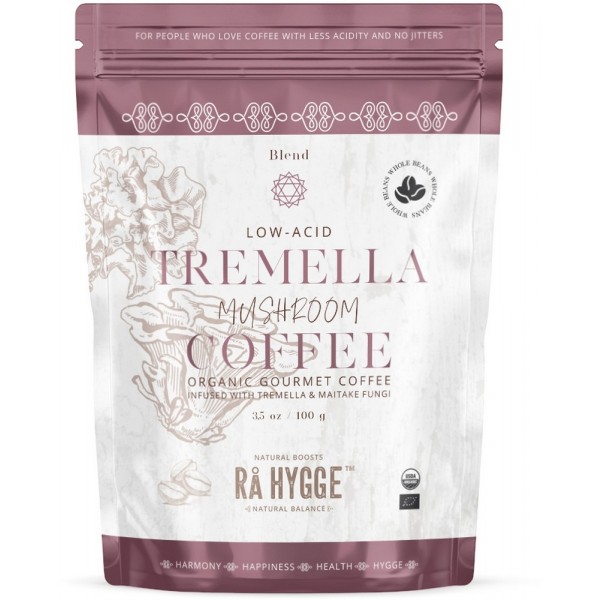 Low-acid mushroom coffee blend with snow fungus and maitake extract infused in Peruvian coffee beans from small farmer co-operatives.