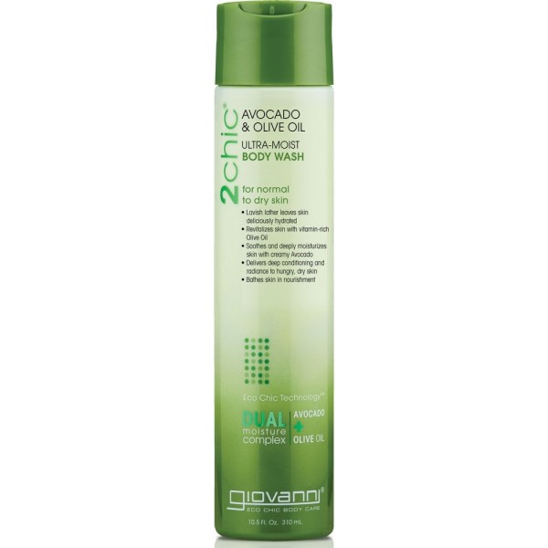 2chic Avocado and Olive Oil Ultra-Moist Body Wash leaves skin more than just clean - it deeply nourishes at the same time! In the shower or tub, this luxuriously rich foaming cleanser re-hydrates dry skin. A delectable botanical blend of buttery Avocado and golden Olive Oil, formulated in our exclusive Dual Moisture Complex to keep your body supple and smooth with two of nature's most nutritious and nourishing fruits.