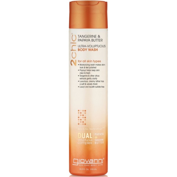 The delicious blend of tangy Tangerine and nourishing, buttery Papaya in our exclusive Dual Voluptuous Complex moisturizes and energizes revealing softer, dewy-fresh skin. This indulgent body wash simultaneously polishes and moisturizes for skin that is voluptuously soft as an island breeze. Blended with clarifying Grapefruit, Ginseng and mouthwatering vanilla - taking 2chic to new heights.