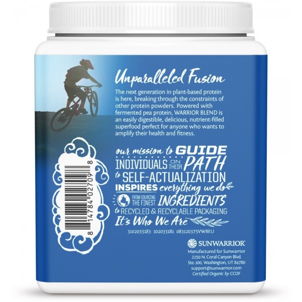 SunWarrior’s Warrior Blend (Vanilla) fuses the synergistic power of several rich protein sources into a one smooth, great-tasting plant-based blend. Fermented yellow peas, goji berries and hemp seeds come together to supply a complete amino acid profile with a substantial amount of BCAAs (branch-chain amino acids). Enhanced with coconut MCTs (medium-chain triglycerides) to fuel your body and active lifestyle. Warrior Blend is a high-performance plant-based protein blend, designed for anyone who wants to amplify their health and fitness.